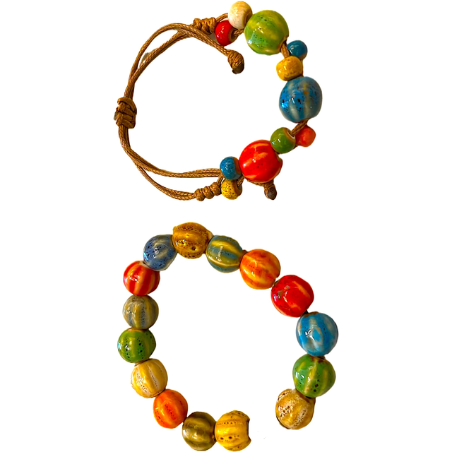 Gekleurde geglazuurde keramische elastische armbanden.