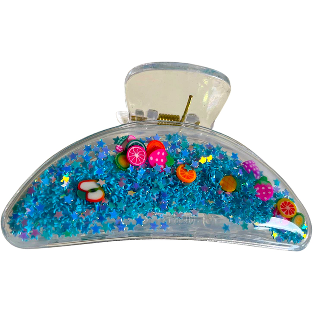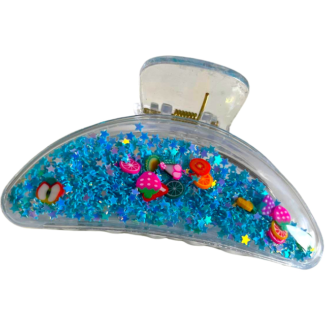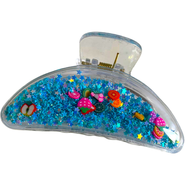 Transparante kunststof haarclip, met feestelijke glitter pailletten gevuld.